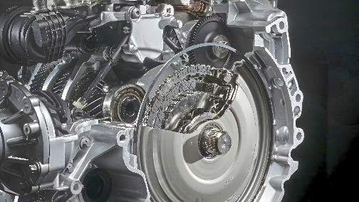 Motorul electric, împreună cu invertorul, este integrat într-o nouă transmisie foarte compactă cu dublu ambreiaj și opt trepte de viteză (8F-eDCT). Această dezvoltare se numește „eDCT” deoarece motorul electric este integrat direct în cutia de viteze, iar comanda sistemului mecanic se realizează electrohidraulic. Un motor electric acționează ambele circuite ale ambreiajului dublu.