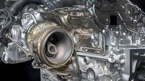 Turbocompresorul cu turbină segmentată este montat prin flanșă pe chiulasa cu galerie de evacuare parțial